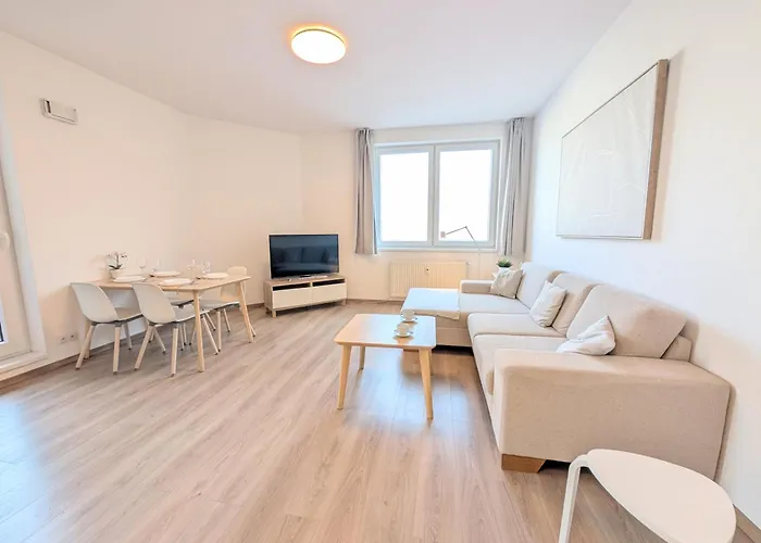 Nur 25 Fußminuten von der Burg Bratislava entfernt, ist das 70 m² große Apartment Schanz - Quietly Oriented - Private Parking - Balcony Pressburg ebenfalls etwa 550 Meter vom Bahnhof Bratislava entfernt. Diese Apartments bietet Ausblicke auf die Stadt.